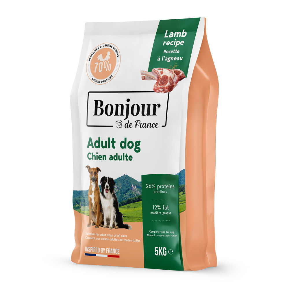 | BONJOUR Chien Adulte à l'agneau 5kg | Rupture de stock | rapport-qualite-prix croquettes chiens | bonjour | |||